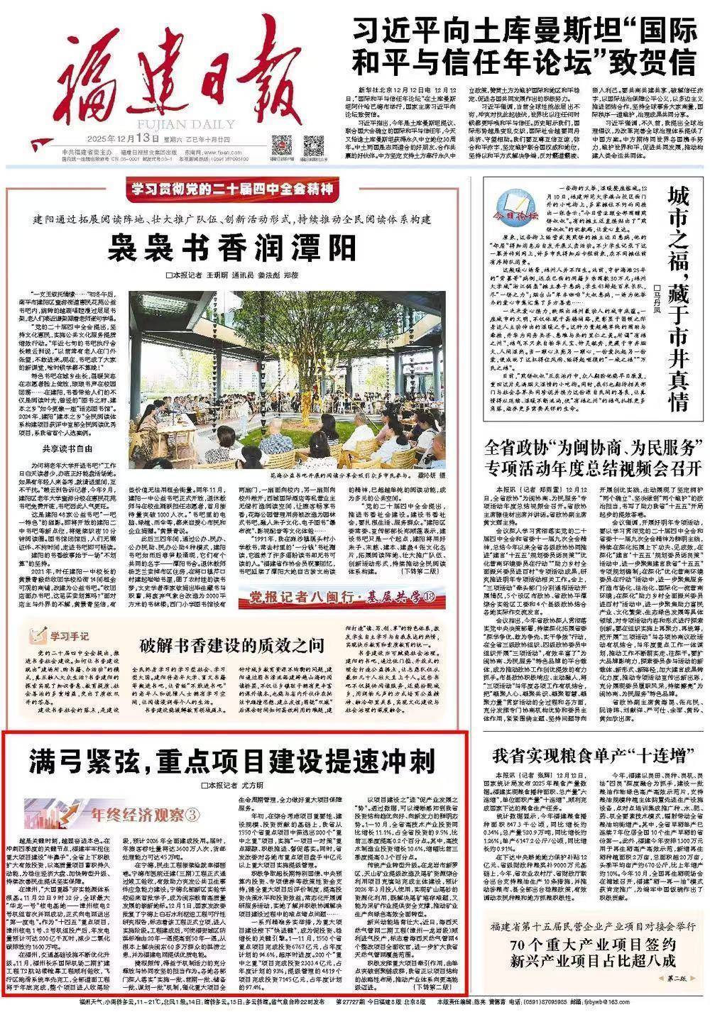 (福建日报记者 尤方明)越是关键时刻,越显奋进本色。在冲刺四季度的关键节点,福建牢牢扭住重大项目建设“牛鼻子”,全省上下积极扩大有效投资,以高质量项目蓄积持久动能,为稳住经济大盘、加快转型升级、持续改善民生提供坚实保障。